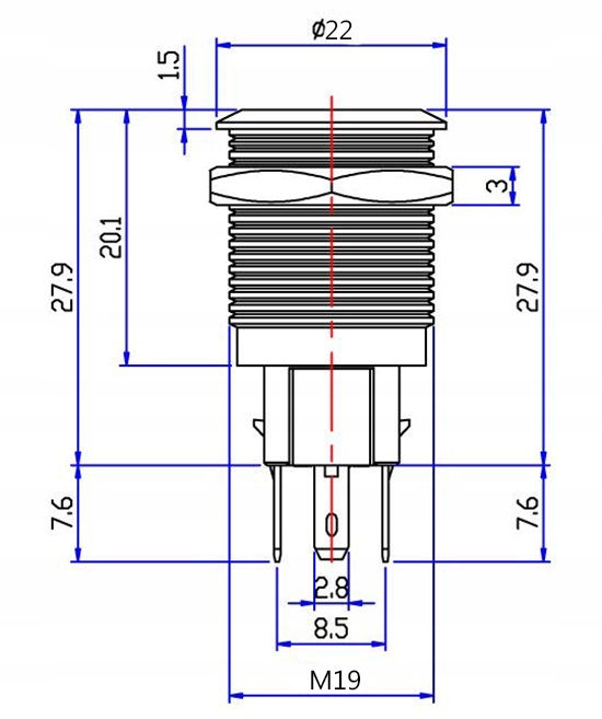PRZYCISK WANDALOODPORNY 19mm CHWILOWY 2A/250V Z